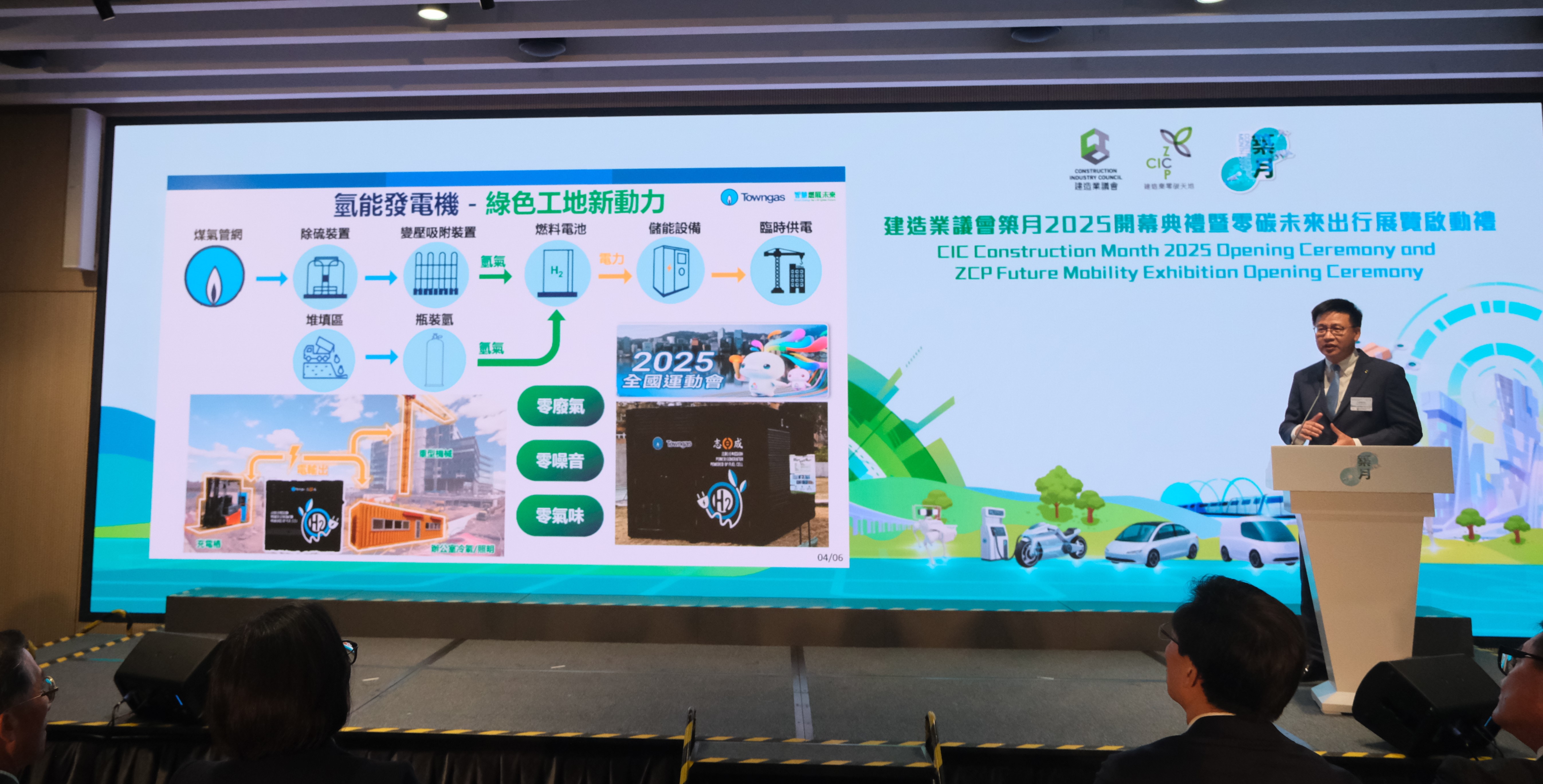 The strategic partnership between Towngas and the Construction Industry Council was announced at the opening ceremony of Construction Month 2025. Both parties will promote the application of sustainable innovative technologies in construction projects. This includes Towngas providing advice to the industry on integrated hydrogen power generation solutions and identifying suitable hydrogen energy equipment suppliers. Towngas will also assist in installing a hydrogen power generation system at CIC-ZCP in Kowloon Bay.