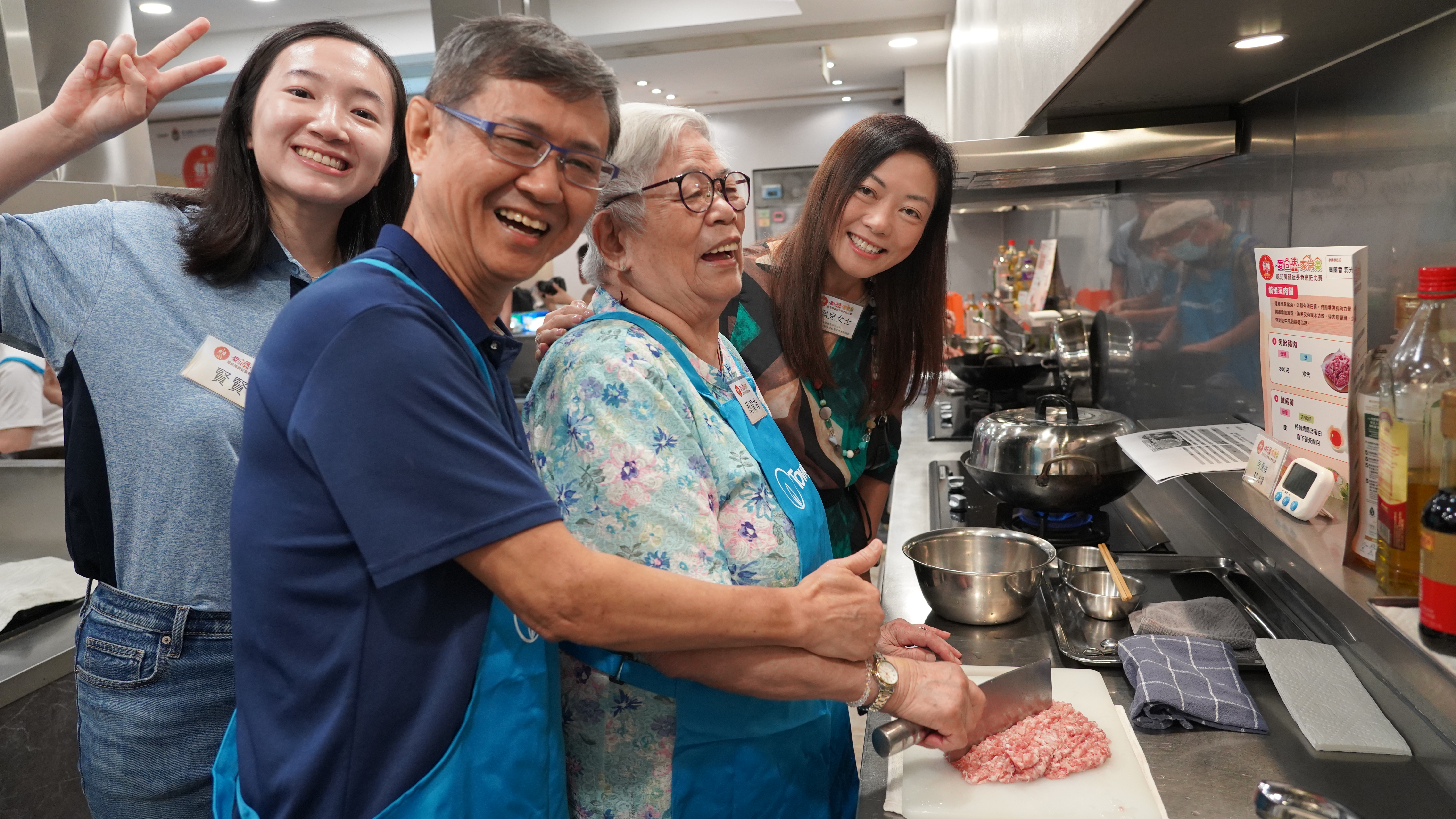 煤气公司企业事务及政府关系总监王佩儿(右一)与煤气公司义工全情投入,与参加者分享烹饪乐趣。