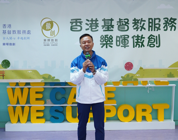 香港基督教服务处副总干事(长者、复康及小区)陈颂皓感谢煤气公司及水务署的一众义工在佳节陪伴「留港长者」,助他们连系小区。