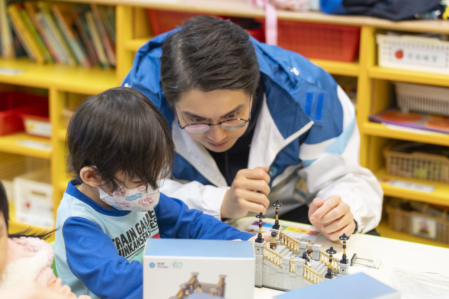一對一的教導,讓學童更易專注,並掌握砌積木的技巧。