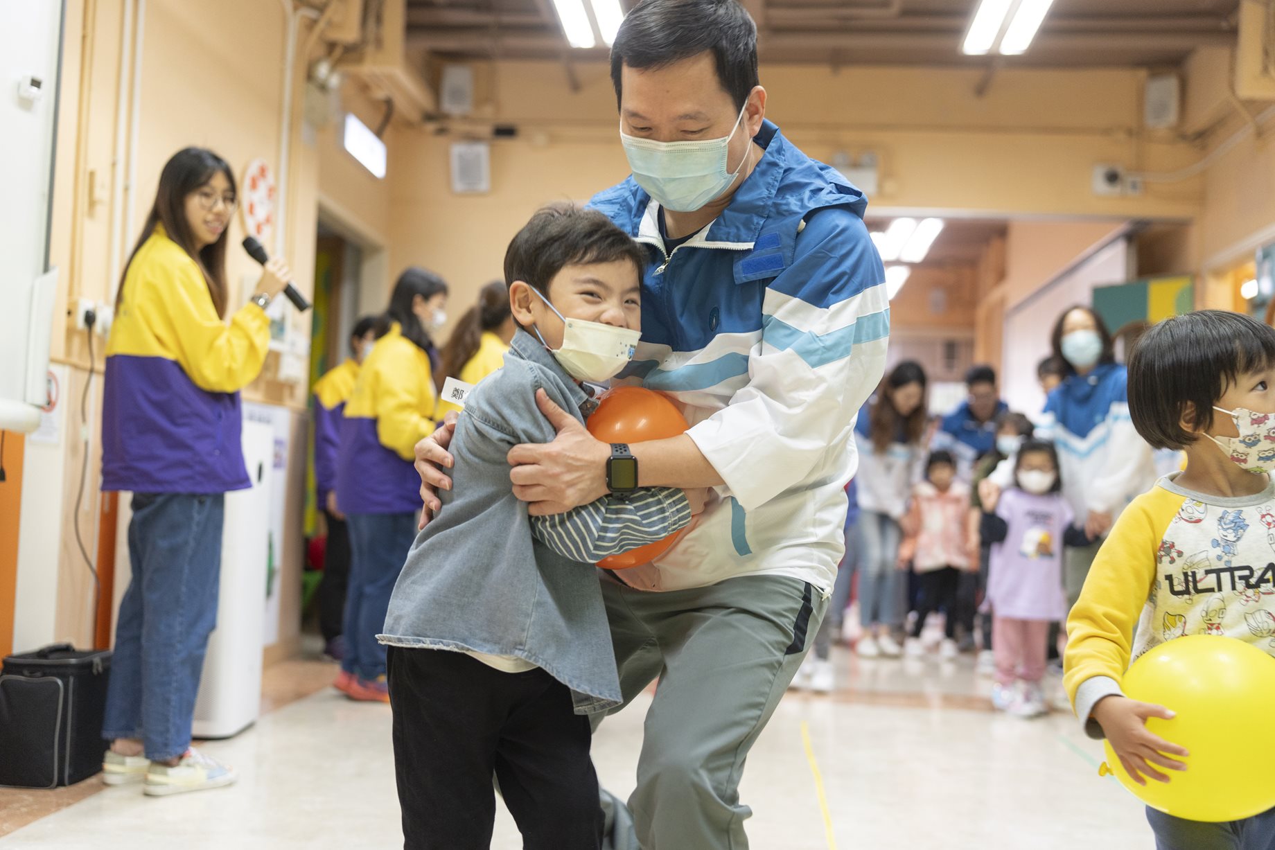 煤氣温馨義工隊義工與學童投入參與遊戲。