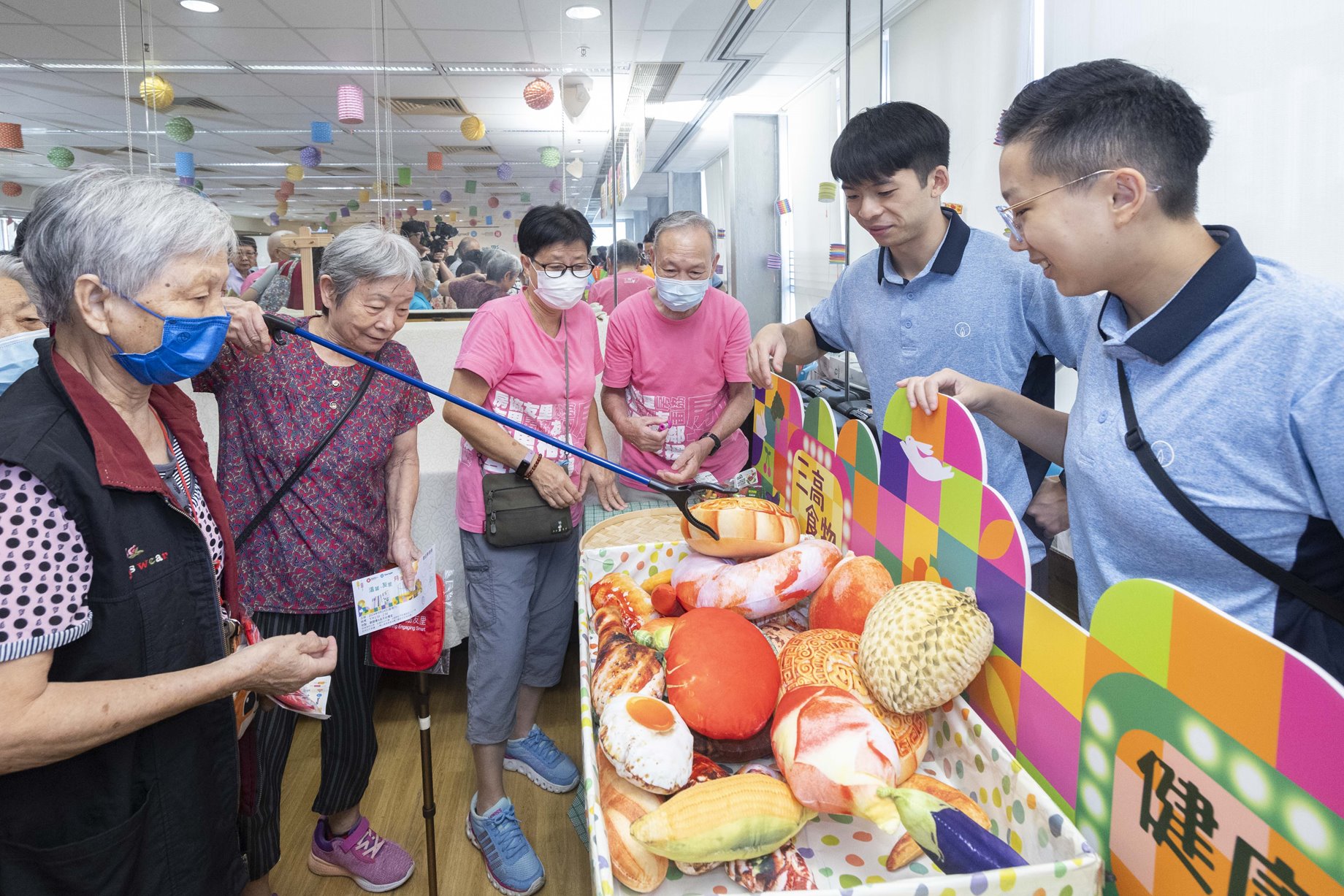 居民與義工們互動,積極參與攤位遊戲,樂在其中。